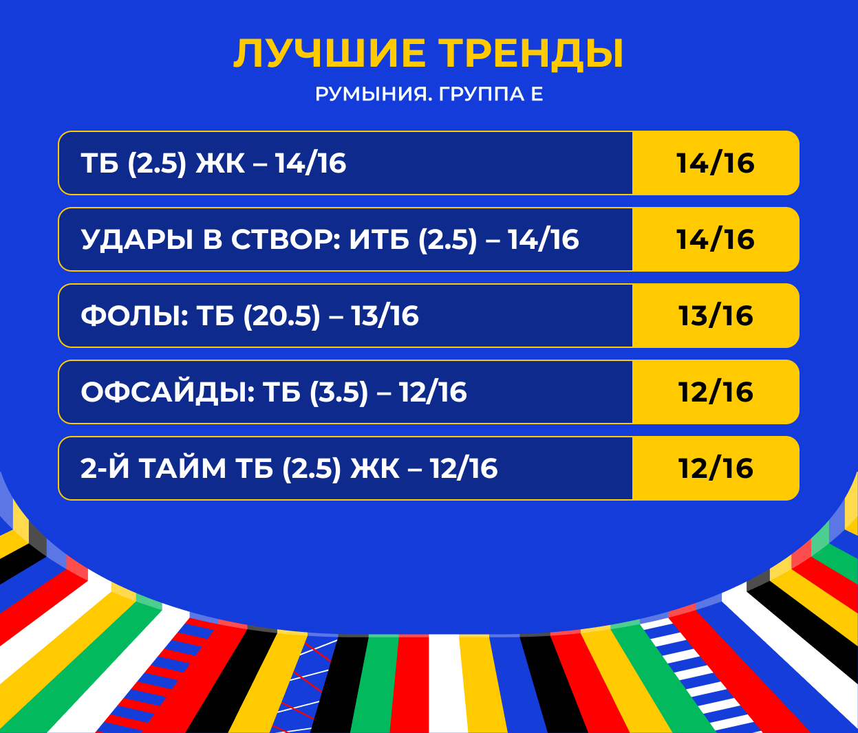 Данный тотал Румыния не пробила дважды: в 2022 году в обоих играх против Черногории. С тех пор прошли товарки и отбор к Евро, а тотал бился всегда. С Бельгией на это событие будет весьма играбельный коэффициент, а вот по Украине нужно будет смотреть на конкретную линию.