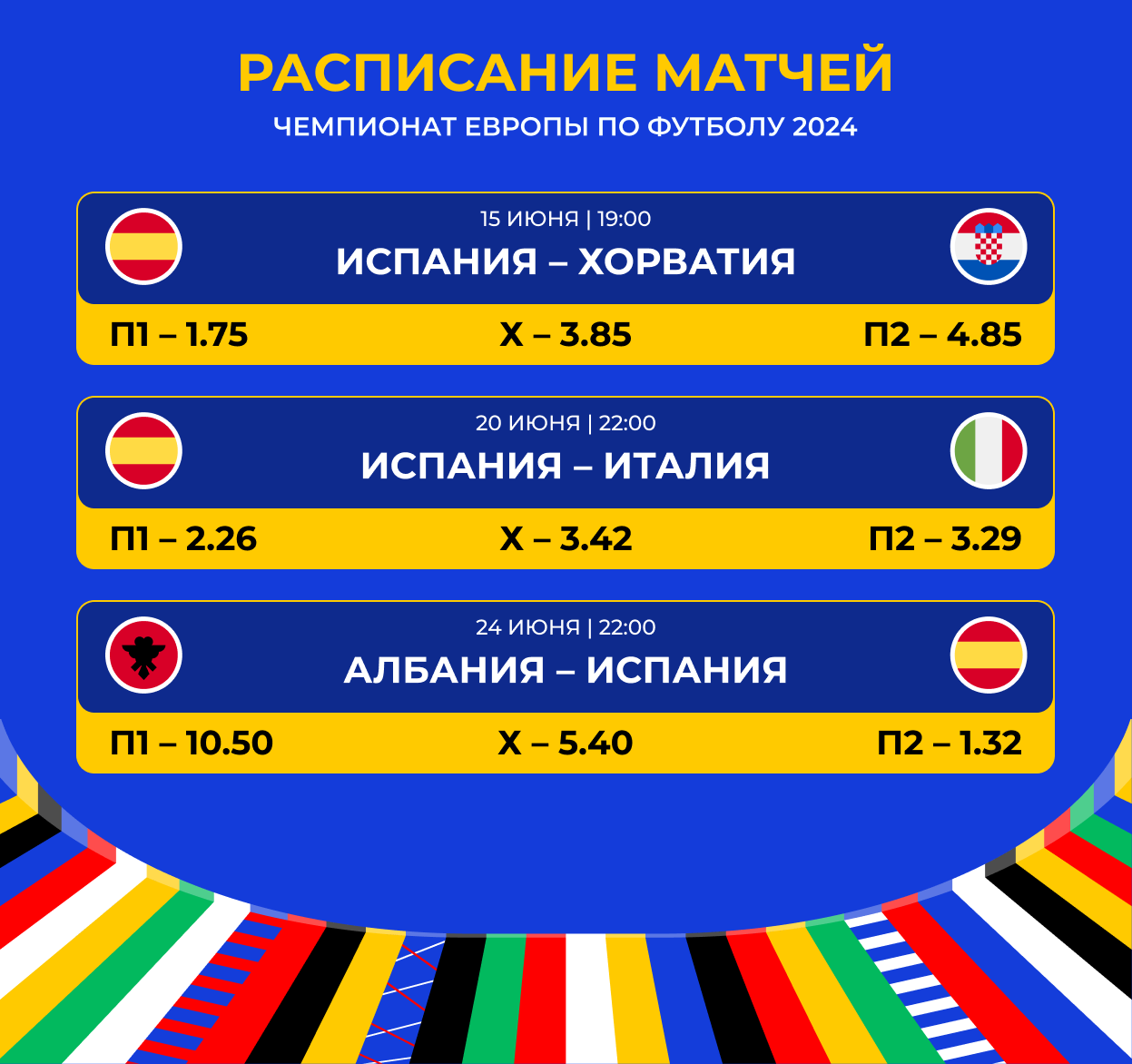 Испания выйдет из группы1.06 Испания выиграет Евро9