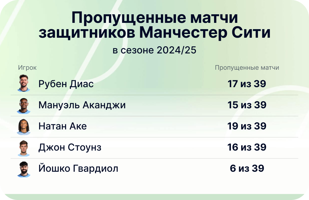 Тренировку 23 сентября 2024 года Гвардиола точно запомнил – в этот день надрыв крестообразной связки получил лидер команды Родри. Чемпион Европы и будущий обладатель “Золотого мяча” не первый раз выбывал из строя и всегда это приносило проблемы для “Манчестера”, но прошлые травмы вынуждали испанца пропустить всего 8 матчей. Нынешние “кресты” фактически закрыли для него большую часть всего сезона. Ориентировочно 43 матча пропустит легендарный опорник и, как оказалось, без него идеи Гвардиолы работают совершенно не так.