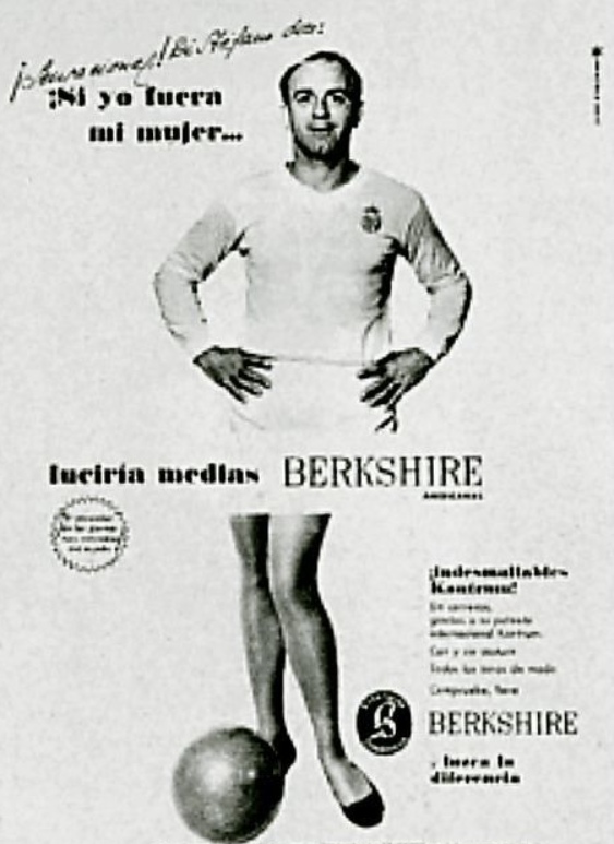 В конце 1962-го года на страницах "Марки" появилась реклама. На фото Альфредо Ди Стефано был по пояс представлен в нормальном виде, то есть в белоснежной футболке, но изображение венчали женские ножки. Слоган гласил: "Если б я был своей женой, то носил бы беркширские чулки". Реклама сразу же была признана скандальной и вызвала в Испании самый настоящий шок: в ту пору на мужчину, надевшем, скажем, голубую рубашку, на Пиренеях уже косились подозрительно.