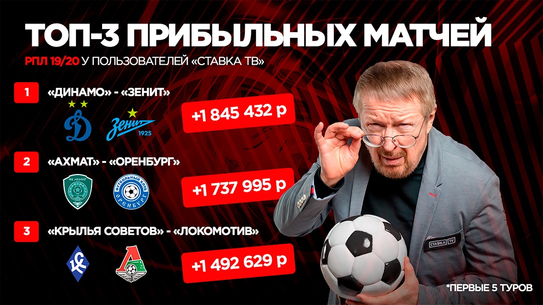 Матчи Российской Премьер-лиги стартовали еще в середине июля, заполнив собой летнее ожидание топовых первенств Европы. Вопреки сложившемуся мнению о тщетности бытия нашего чемпионата, первая пятерка туров скорее порадовала болельщиков, нежели огорчила. Что касается любителей прогнозов, то у них дела были не столь радужными. Все еще думаете, что ставки на фаворитов дело благодарное? Отнюдь. СТАВКА TV вновь поднимает статистику, чтобы определить, какие из матчей РПЛ этого сезона принесли капперам отличный доход, а каких лучше бы и вовсе не существовало в природе.