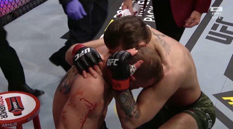 Тем не менее, Конор вышел свежим и заряженным на победу. Он на время даже отказался от трэштока, за который его так любят во всем мире и так ненавидят в Дагестане. Магрегор не был похож на себя обычного и проявил максимум уважения, пожав руку сопернику до боя и обняв и поцеловав его после.