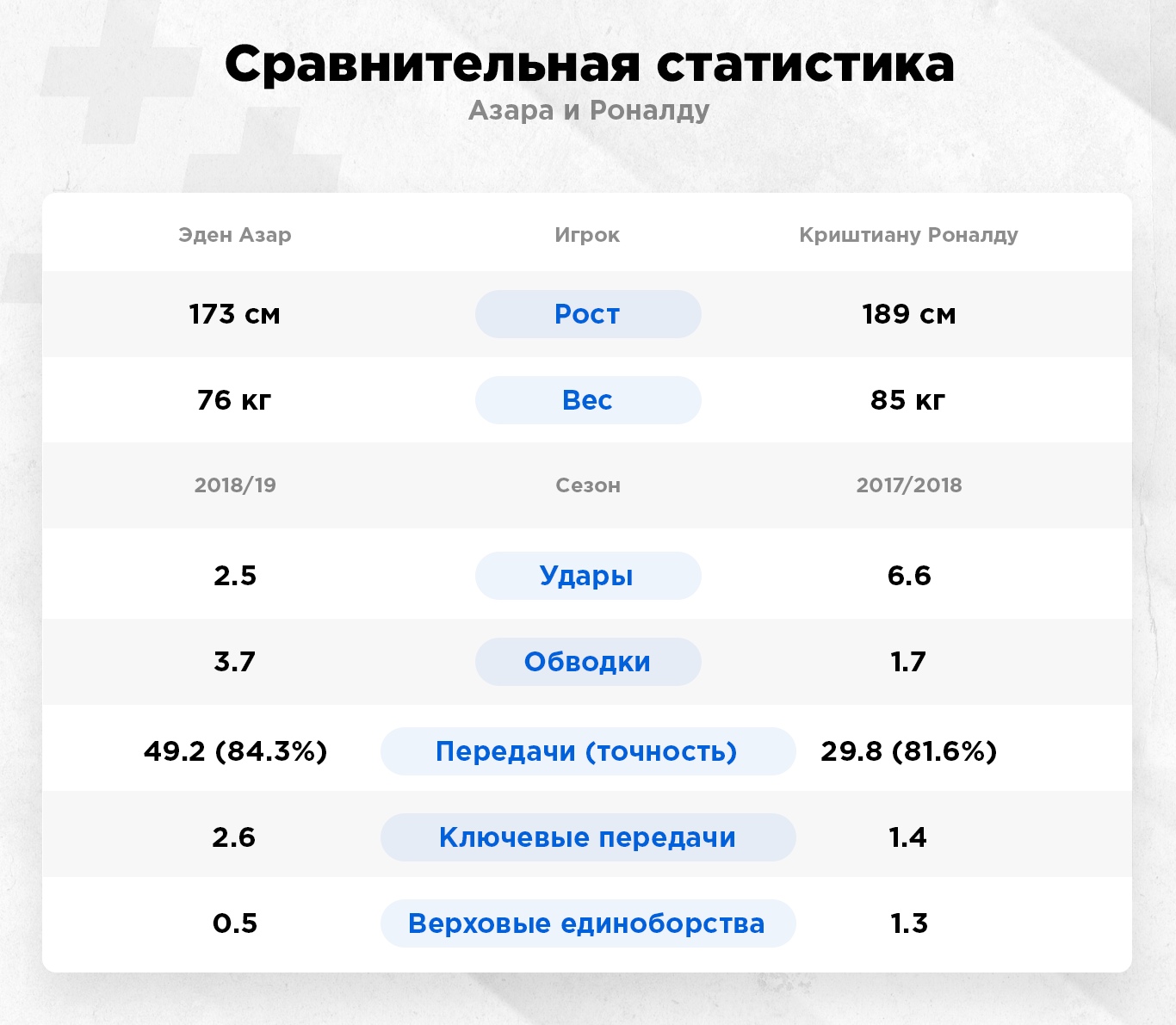 Азар и Роналду — разноплановые игроки. Криштиану чаще завершал атаки, чем их создавал. Противоположная ситуация с Эденом — он скорее плеймейкер, чем форвард. Бельгиец любит опускаться к центру в поисках мяча, в то время как Роналду ждет мяч в финальной трети поля. Азар просто не мог стать "Новым Криштиану", чего ждали все поклонники "Реала".