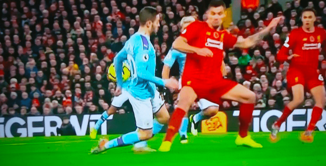Конечно, “Сити” не повезло. Пропустить в первой же атаке на свои ворота после того, как в сторону “Ливерпуля” не назначили одиннадцатиметровый, – это еще нужно умудриться. Но давайте сразу же расставим все точки над I. Пенальти, действительно, не было. Тренту, безусловно, мяч попал в руку. Но на ТВ почему-то решили не объяснять решение арбитра после просмотра VAR: пенальти не был назначен из-за игры рукой со стороны Бернардо Силвы. Взгляните сами: