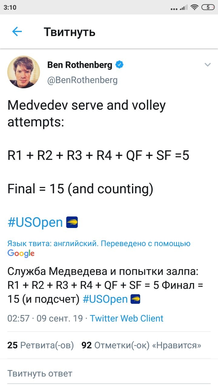 Медведев, начиная с середине третьей партии полностью изменил свою игру. О его тактической гибкости мы тоже предупреждали, и вот этот прием снова работает в самый нужный момент. Если Джоковича в Цинциннати Медведев удивил роскошной второй подачей с силой первой, и Новак так и не смог прибиться к ним, то с Рафой все было гораздо изощреннее. Во-первых, Даниил стал рисковать и выходить к сетке практически в каждом розыгрыше на своей подаче. Где-то это выглядело авантюрно, где-то ему не хватало координации, и после этого звучало мощное сафинское: “Да куда же ты …?!”, но в целом работало достаточно неплохо. За все время на US Open Медведев выходил вперед сразу после подачи пять раз. В финале – в три раза больше. 15 раз в одном матче!