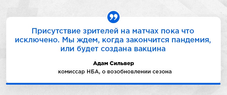 Адам Сильвер, комиссар НБА, давно не делал заявлений по возобновлению чемпионата. Последние слова датированы 10 мая, когда главнокомандующий лиги обратился к игрокам по видеоконференции. Сильвер назвал критерии, при которых сезон будет доигран: