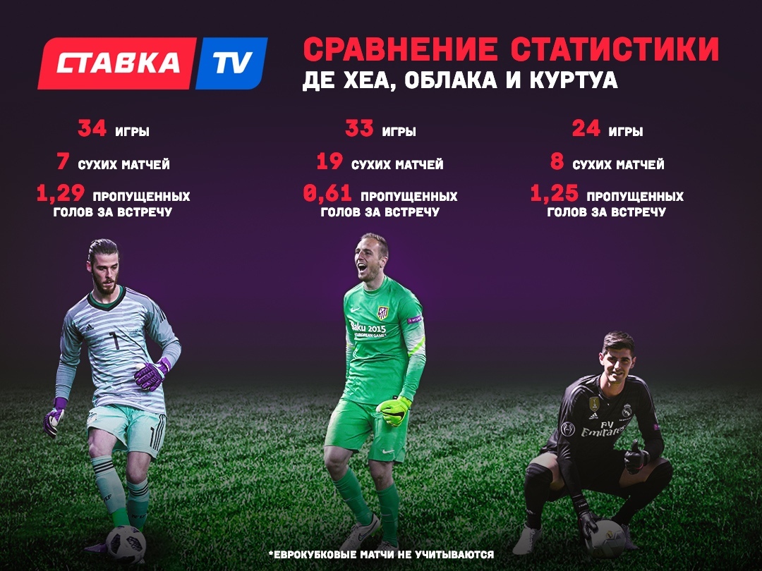 Воротчик мадридского “Атлетико” практически в два раза превосходит своих коллег из “Реала” и “Манчестер Юнайтед”. Первый номер “манкунианцев” может выдать блестящий поединок, как было в январе в игре с “Тоттенхэмом”, где испанец совершил 11 сейвов за 90 минут и оставил свои ворота сухими, но на протяжении всего сезона выдавать такие перфомансы у него кишка тонка. Куртуа был признан лучшим голкипером ЧМ-2018, но после сказочного месяца в России Тибо уже не стреляет из пушки, а делает женственный пиф-паф.