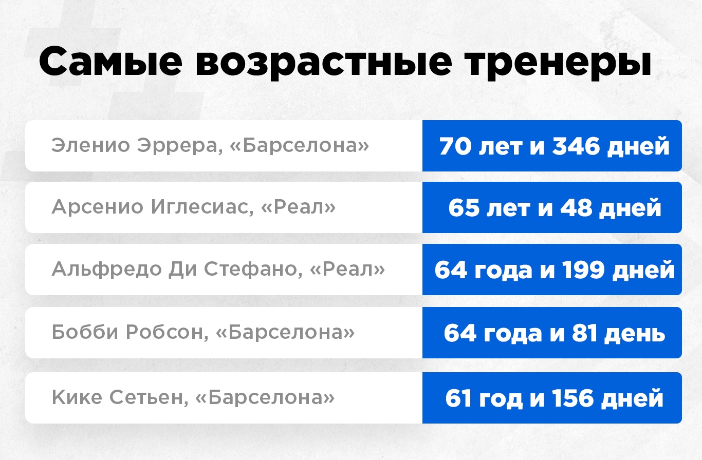 • Кике Сетьен (61 год и 156 дней) — пятый самый ветеранистый тренер в истории Дерби Эспаньол.