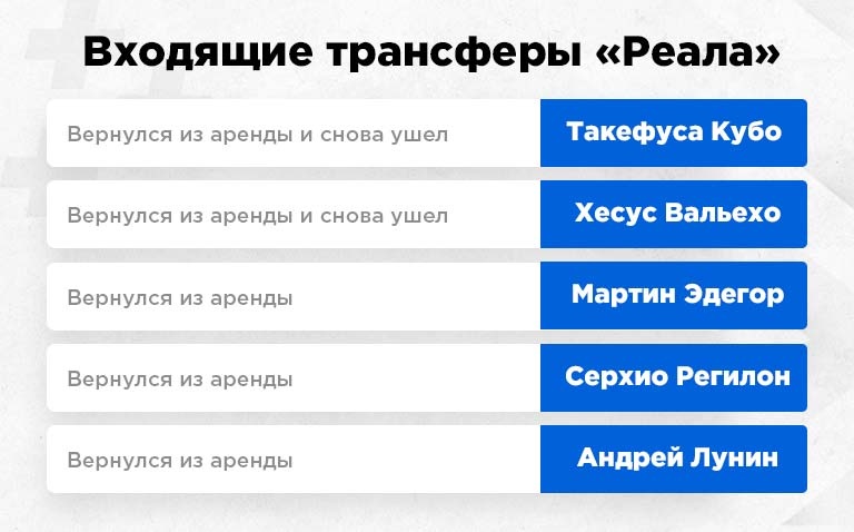 Из всех игроков, вернувшихся из аренд, наибольшие комплементарные отзывы собрал Мартин Эдегор, блестяще проведший свой прошлый сезон в "Сосьедаде". Мадридская пресса называет его потенциально лучшим футболистом столичной команды в сезоне 2020/21.
