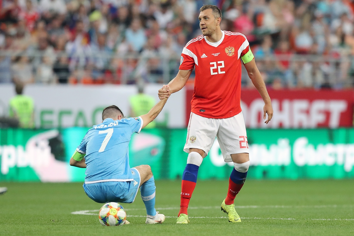 Почти 25 минут сборная России не могла пробить вратаря, чью фамилию уже давно забыли. Хотя командный IQ в атаке был невообразимо высок: братья Миранчуки, Головин, Дзюба – все лучшее, что есть в нашем позиционном наступлении. Однако комбинационная игра разбивалась о мощные редуты соперника, который оборонялся не умением, а количеством – все полевые игроки дежурили в своей штрафной площади.