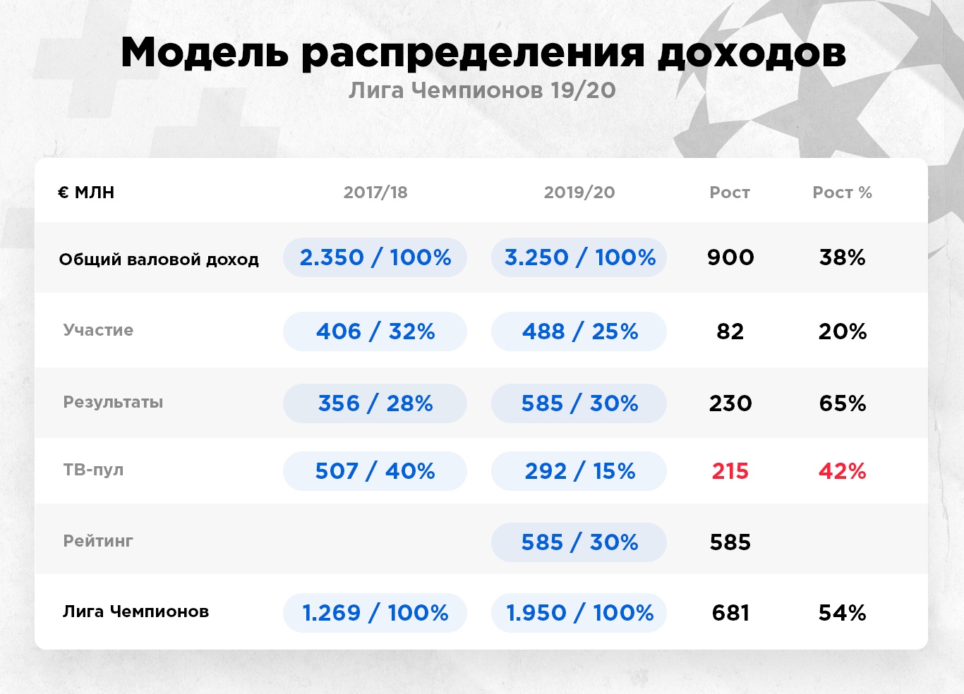 15% от ТВ-прав (€292 млн).