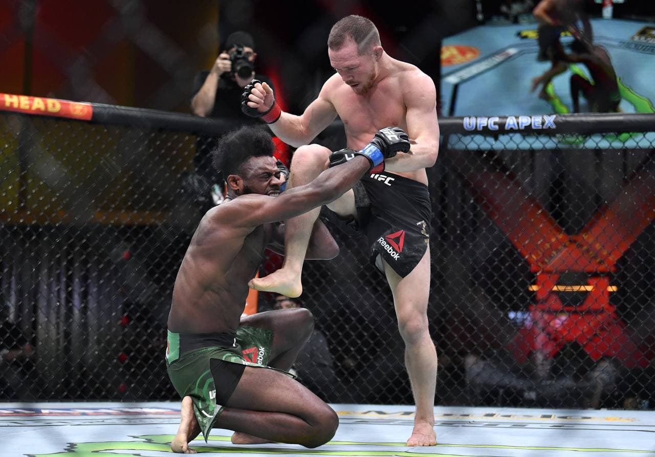 Судьи засчитали первый раунд Стерлингу, хотя Алджамейн ничем не удивил. Один раз перевел Яна, но этот тейкдаун был ему скорее в минус, так как Петр быстро поднялся и провел атаку. Остальные три раунда россиянин разбирал оппонента, как ребенка. На стердауне Ян сказал: “Твои тейкдауны? Смешно. Я тренировался в Дагестане”. Так оно и получилось. Петя не давал себя уронить на канвас, причем даже сам бросал американца, как маникен. Так было все три раунда, пока не случилось страшное — Петр ударил коленом, когда этого делать было нельзя.