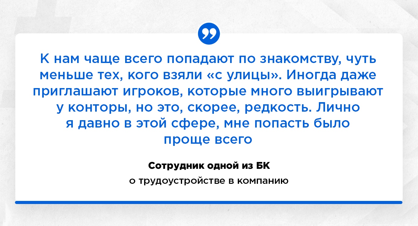Все, что вы прочитаете в этом материале, реальные истории разных людей, которые когда-либо работали в букмекерских конторах. Вся информация взята из открытых источников. Верить им или нет – решать только вам. Мы же советуем нашим пользователям пользоваться услугами исключительно легальных компаний, деятельность которых регулируется законами Российской Федерации и контролируется государством.