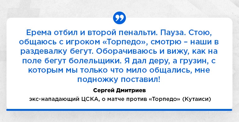 Матч возобновился спустя полтора часа – шли переговоры, успокаивали фанатов. Грузинская сторона вновь вышла с предложением: те же деньги, после игры привезут в гостиницу. Мераб Мегреладзе, нападающий "Торпедо", рухнул на колени: "Я завезу лично сам, только дайте сравнять! Мамой клянусь, завезу!". Армейцы согласились, иначе они могли просто не уехать со стадиона.