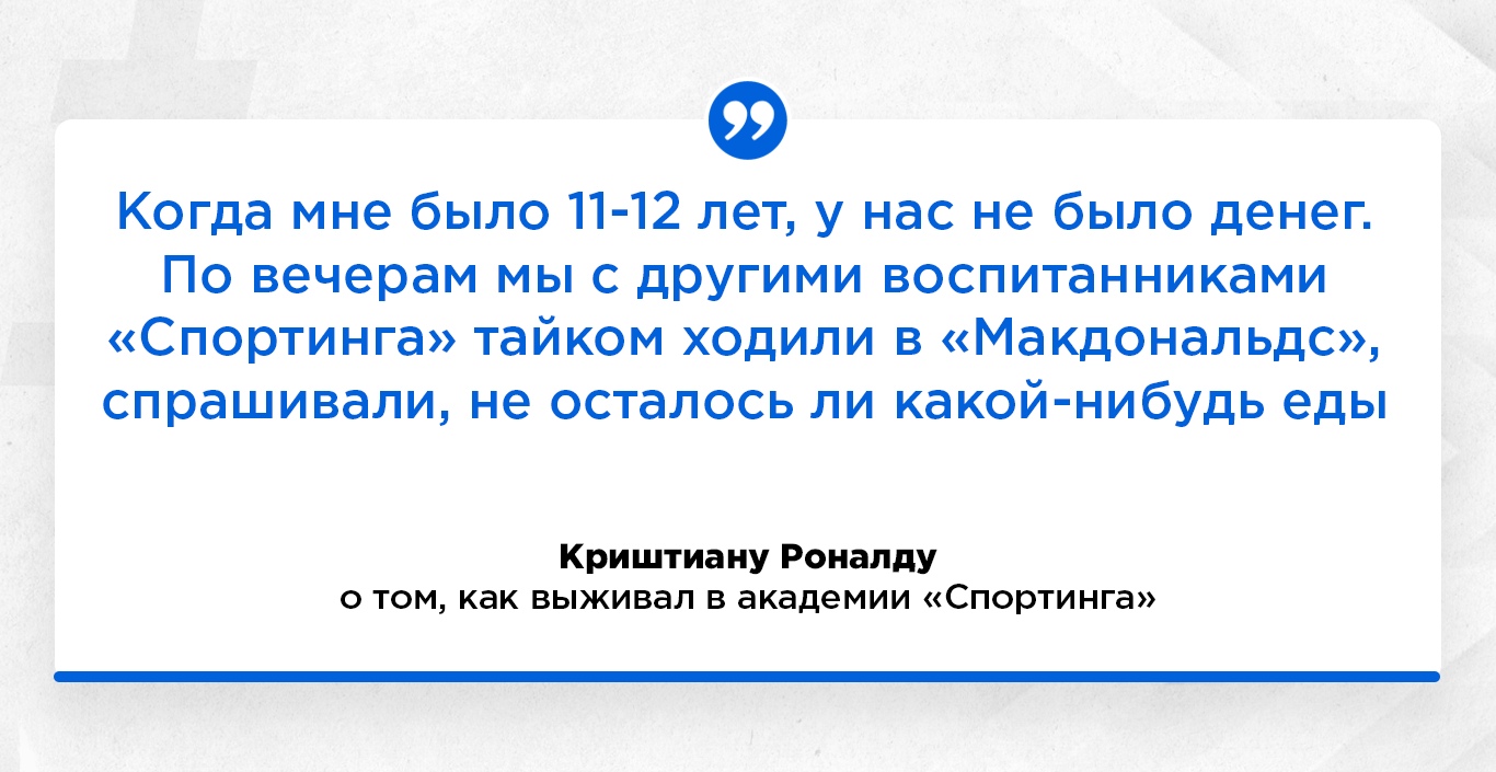 Каждый спортсмен встречает трудности на своем пути к славе. Причем проблемы бывают совершенно разные. Так, например, Кришитану Роналду столкнулся с бедностью. Семья португальца жила небогато, а его отец был алкоголиком. После переезда в академию “Спортинга”, юный Криш голодал.