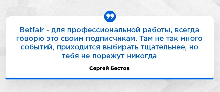 — Во время интервью так или иначе уже называлось три букмекера или биржи: Betfair, Марафон, bet365. Лучший букмекер всех времен и народов по мнению Сергея Бестова?