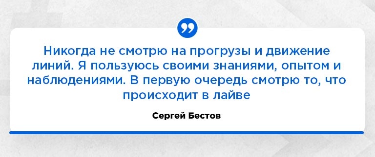 Я пользуюсь своими знаниями, опытом, наблюдениями. В первую очередь смотрю то, что происходит в лайве. Эту ставку я сделал по линии, но в лайве я буду смотреть, что там происходит. Может, что-то доставлю или переставлю, как я иногда это делаю. Вчера так делал на матче Квитова-Роджерс, чуть не проиграл весь баланс на этом.
