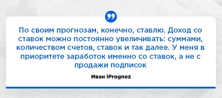 — Сейчас ты сам ставишь на свои прогнозы? Если да, то сколько?