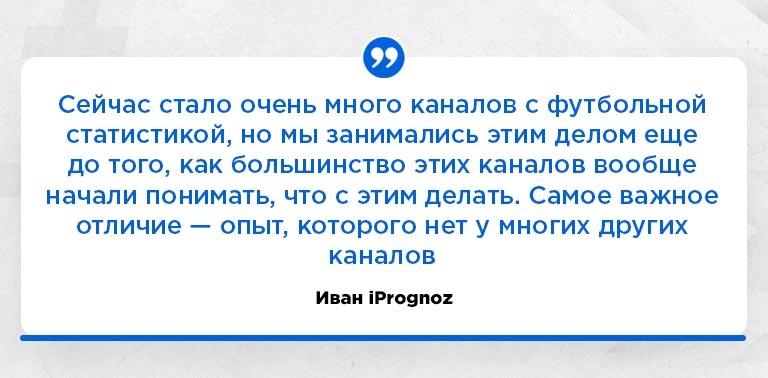Если все же хочешь знать, чем моя рассылка отличается от других, то я скажу так: действительно, сейчас стало очень много каналов с футбольной статистикой, но мы занимались этим делом еще до того, как большинство этих каналов вообще начали понимать, что с этим делать. Как я уже говорил, я вручную составлял таблицы со статистикой, чтобы запилить прогноз. Затем я долгое время перенимал опыт, работая с Евгением Трифоновым.