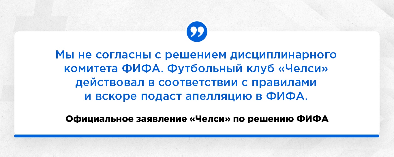 Апелляция, поданная в ФИФА, была отклонена. "Челси" пошли до конца и обратились в Спортивный арбитражный суд (CAS), где было принято решение сократить бан до одного трансферного окна.