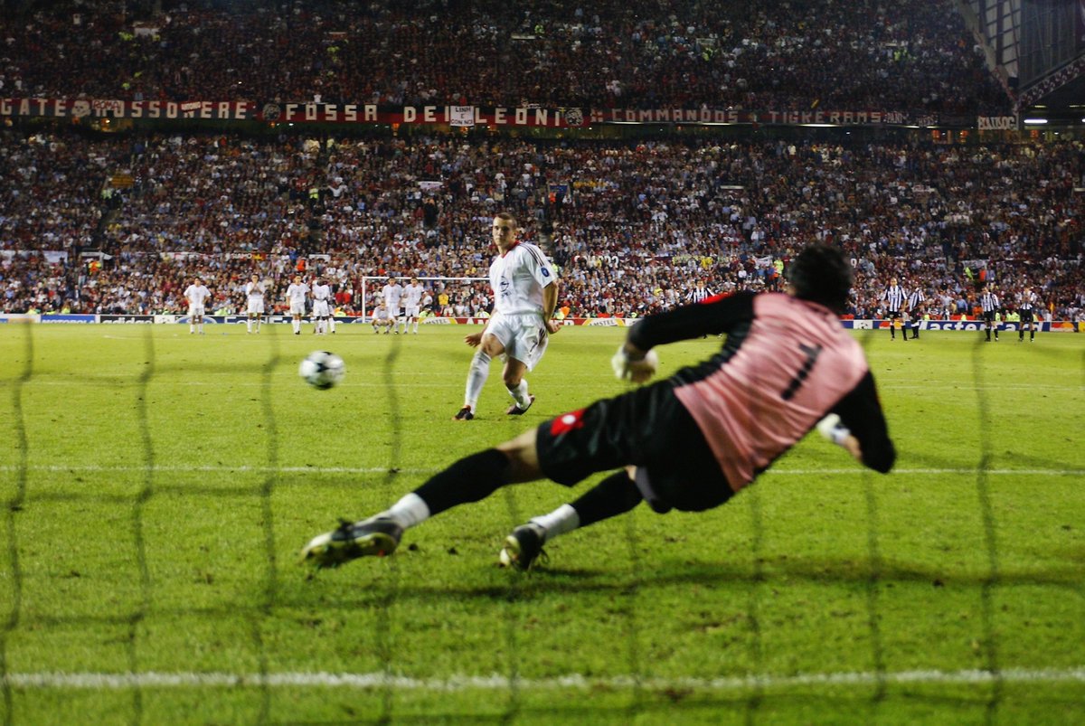 Андрей Шевченко вышел пробивать пенальти против Буффона последним. Взгляд на мяч, взгляд на арбитра, на мяч, затем вновь на арбитра, на мяч, на арбитра, разбег, аккуратный удар в угол. И вот уже украинский форвард тонет в объятиях партнеров. “Милан” — лучший клуб Европы. Тот финал получился истинно итальянским, по духу, по качеству игры, по стилю. Но серия послематчевых пенальти, а также эти взгляды Андрея, — навсегда войдут в золотую коллекцию игры.