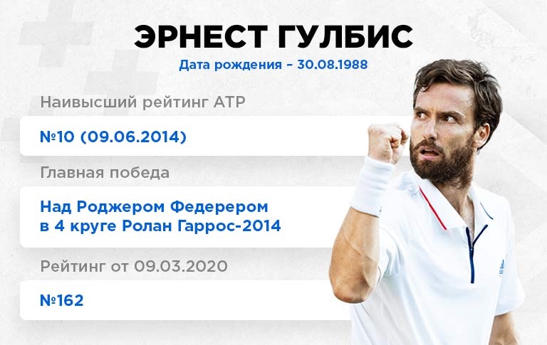 Эрнест всегда отлично настраивался на матчи с топами. В 2013-м году на грунтовом "Мастерсе" в Риме он выиграл сет у Надаля со счетом 6:1. В 2008-м на "Мастерсе" в Цинциннати обыграл Новака Джоковича. В 2015-м, когда серб за год проиграл лишь семь раз, Гулбис мог закрыть его в двух сетах в Монреале, но упустил несколько матчболов на тай-брейке второй партии.