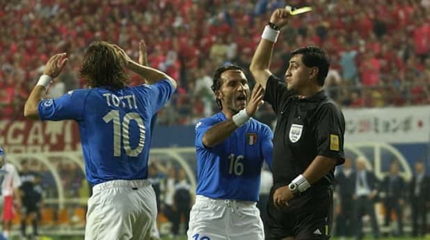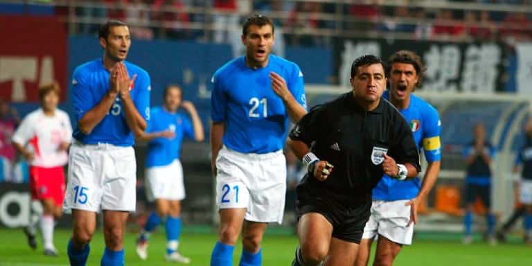 Уже на пятой минуте в ворота итальянцев был назначен одиннадцатиметровый удар, но Джанлуиджи Буффон справился c невнятной попыткой Ан Джон Хвана. В дополнительное время эквадорский человек в черном удалил споткнувшегося Франческо Тотти, после чего итальянцы включили вице-чемпионов Европы и Дамиано Томмази забил-таки второй мяч в ворота Южной Кореи. К вящему удивлению всего мира, Морено вновь вмешался и отменил этот гол – позже он обвинит во всем лайнсмена, просигнализировавшего офсайд.