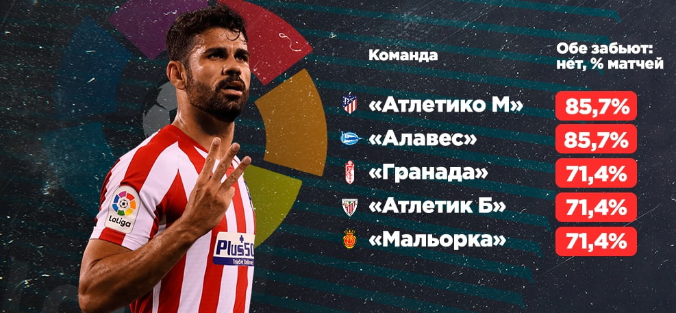 "Атлетико" Мадрид и "Атлетик" из Бильбао в сумме являются самыми "сухими" в чемпионате. Что неудивительно, исходя из количества забитых мячей в их встречах.