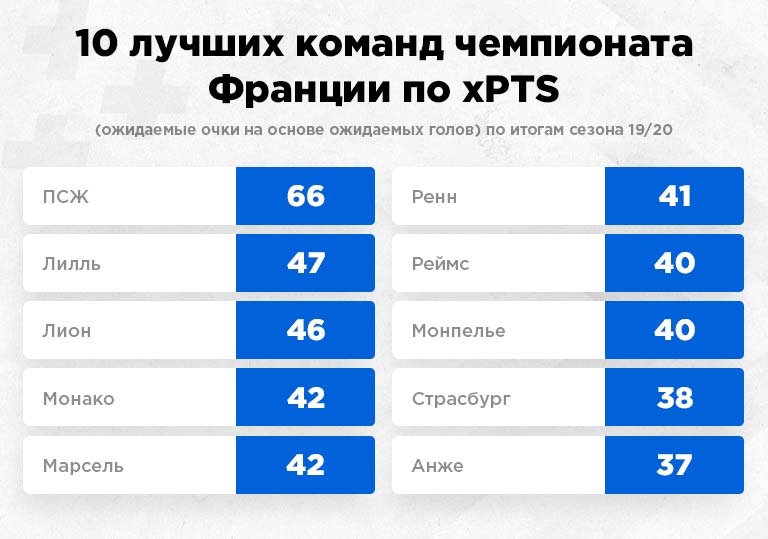 Подопечные Андре Виллаша-Боаша уверенно стали вторыми и выдали вполне неплохой сезон, особенно на фоне показателей "Лиона" и "Монако" в чемпионате. Однако по xPTS, ожидаемым очкам на основе xG-статистики, команда явно перебрала и не наиграла на свои 56 поинтов, а должна была примерно бороться за топ-4.