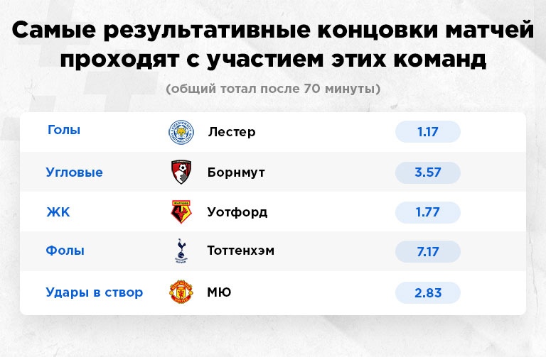 Самое понятное и простое - статистика в концовке матча. Поэтому разбор каждой лиги будет начинаться именно с такой подборки, а дальше уже более детально.