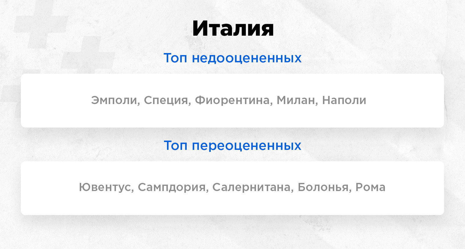 К каждому матчу букмекеры выставляют линию, оценивая шансы команд на успех. Используя коэффициенты по выходу линии, проведем анализ по командам, которые хуже всего получалось оценивать у букмекеров в первой части сезона. Недооцененные команды - это те, делая ставки на которые, можно было иметь итоговый плюс. Переоцененные - наоборот, против кого было выгодно ставить, и, возможно, будет выгодно в дальнейшем.