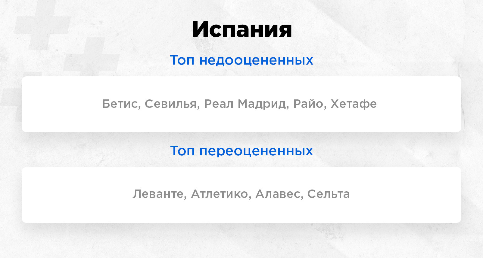 В Испании все слишком просто вышло. Три команды с вершины турнирной таблицы идут вместе и в нашем топе.