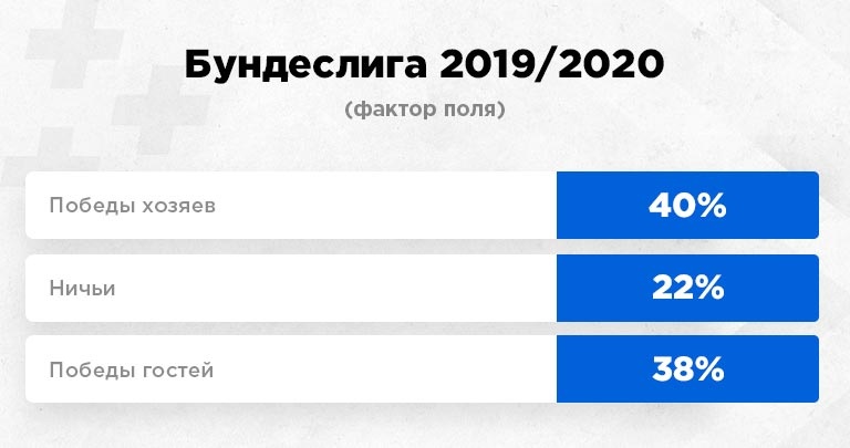 Пауза из-за пандемии по-разному влияла на все чемпионаты. Не все лиги оказались готовы играть при пустых трибунах, во многих чемпионатах снизился процент успеха домашних команд. На Бундеслигу карантин тоже произвел определенный эффект, в результате чего мы не видим явного преимущества своего поля.