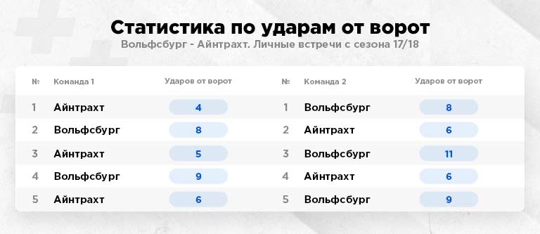 Перед каждым туром смотрел этот рынок, но как-то ничего конкретного не попадалось. И вот на этот раз есть хороший вариант. В матче “Вольфсбург” – “Айнтрахт” букмекеры предлагают линию в 16.5 ударов от ворот. Средние тоталы команд по сезону – меньше 16. Статистика личных встреч есть с сезона 17/18, и там все пять матчей на ТМ.