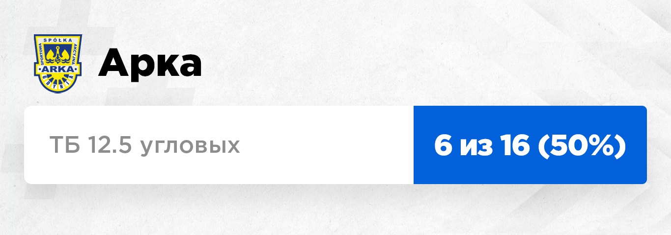 Команда из глубин чемпионата Польши, в матчах которой не очень-то много угловых (в среднем всего 10.64 за матч), но при этом такая высокая проходимость по ставке на ТБ 12.5. Во многом этому поспособствовали отрезки игры, когда команда вела в счете, в таких ситуациях было много угловых. Интересно, что у их ближайшего соперника, "Гурника", эта ставка прошла в двух последних матчах. Трехпутевой тотал больше 12 на них оценивается коэффициентом 3.74.