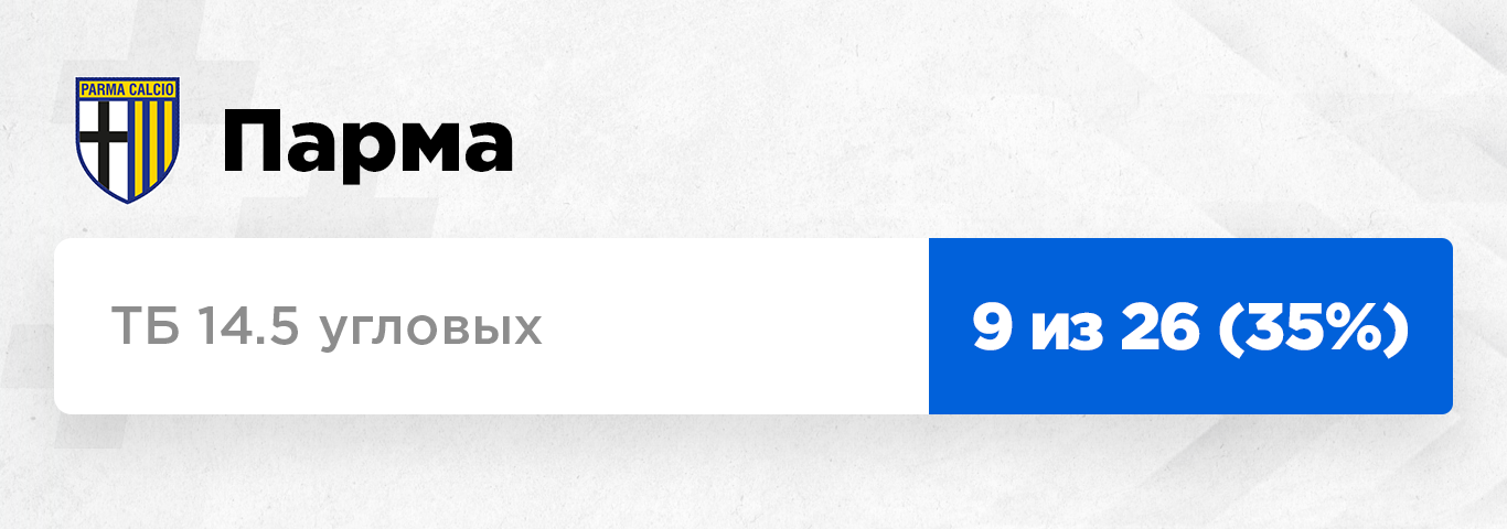 "Парма" выглядит как яркий пример влияния тактики на тотал угловых. Когда в матче ничья – все спокойно, никаких интересных цифр. И при таких условиях "Парма" по угловым где-то в серединке таблицы. Но как только ситуация в матче меняется – угловых становится очень много. При чем не важно, забила "Парма" или пропустила. Если забила, то тотал набивается соперником, если пропустила, то сама подает очень много, мы уже это отмечали в предыдущих материалах. Ну и вот таким макаром в этом сезоне уже 9 матчей на ТБ 14.5 угловых.