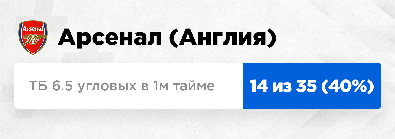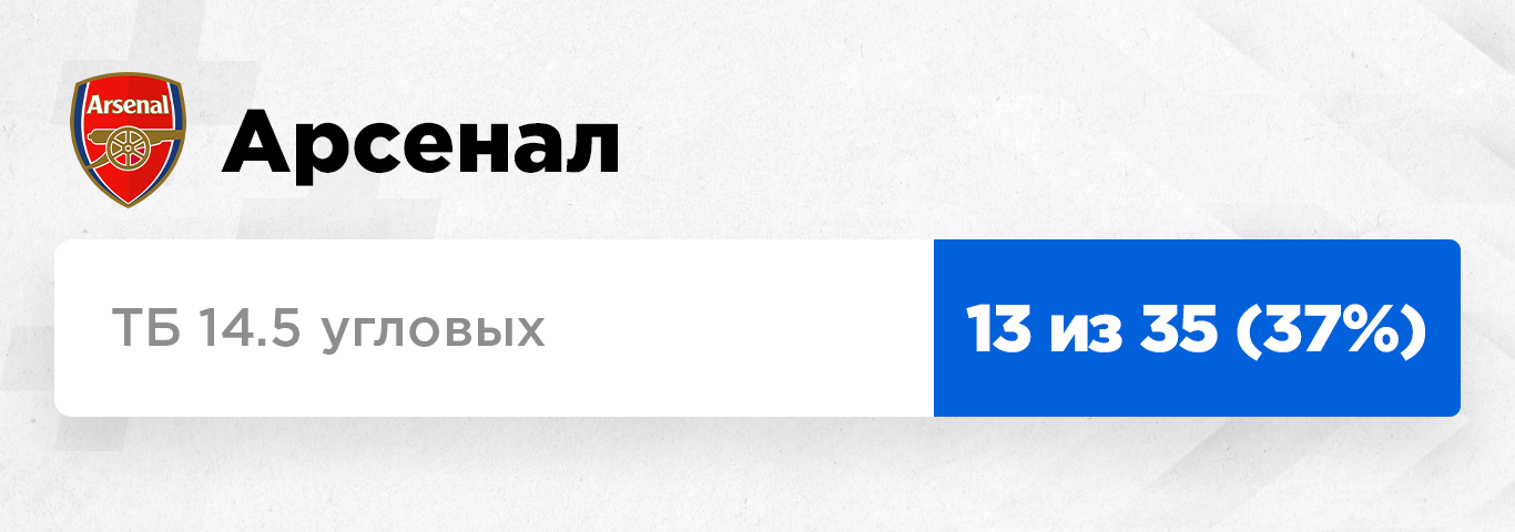 Уже 13 матчей на ТБ 14.5 угловых – это, конечно, очень внушительно, но вряд ли имеет отношение к нынешнему "Арсеналу". Уже не раз обсуждалось, что ситуация с угловыми значительно изменилась с приходом Артеты, и подобная ставка прошла только единожды, в дикой перестрелке угловыми с "Челси".