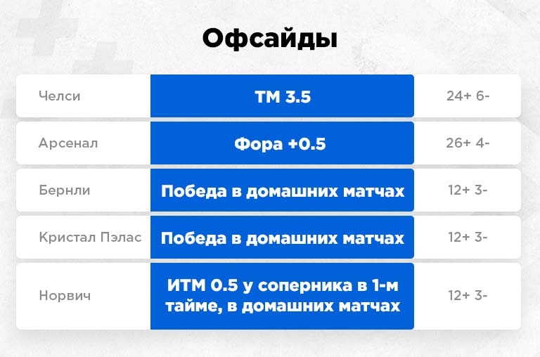 Для лайва: если "Бернли" ведет в счете, то команда настолько глубоко садится, что соперники практически совсем не попадают в офсайд. Вообще, у них обычные цифры, то есть за игру у соперника положение вне игры 1-2 раза. Но за те 630 минут, что команда вела в счете, соперники попадались в офсайд всего дважды (630 минут!). Это не случайность, и такая статистика явно связана со стилем игры команды, поэтому стоит себе приметить.