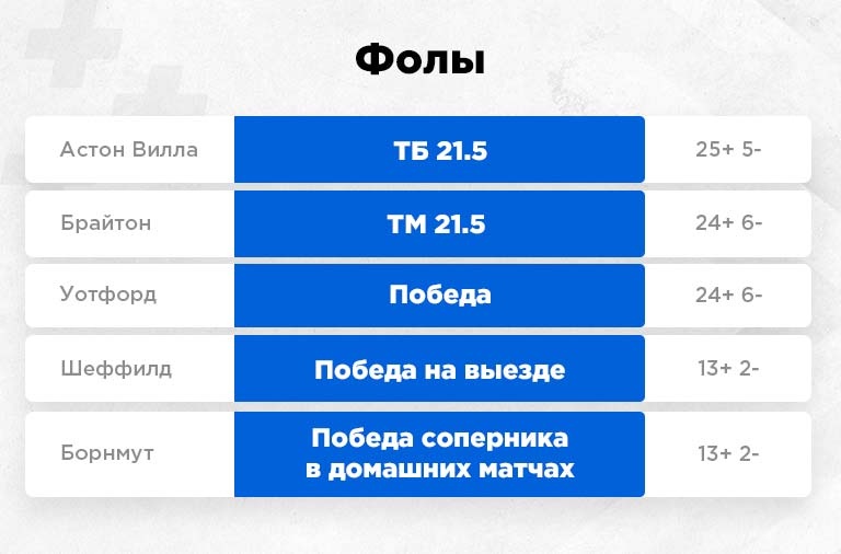 У “Астон Виллы” с этим показателем все в порядке. В последних 18-ти матчах 12 побед, одна ничья и пять проигрышей. В 2020-м году в среднем побеждают с разницей -1.2. В личной встрече первого круга ставка, соответственно, также прошла.
