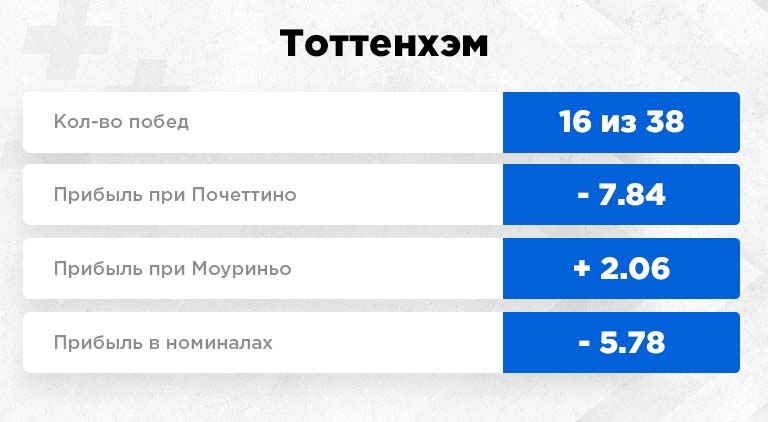 По итогу всего сезона убытки от ставок на победу "шпор" велики, но во времена Моуриньо вы были бы в плюсе.