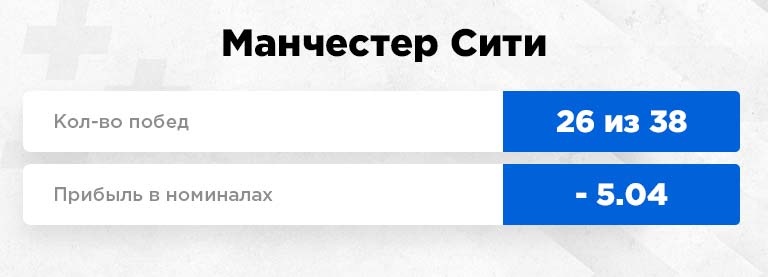 Проблемы в опорной зоне и центре обороны в совокупности с нервозностью от постоянно растущего отставания от "Ливерпуля" сделали свое дело – всего 26 побед в 38 турах. А при том, что "Манчестер Сити" постоянный фаворит, рассчитывать на прибыль по итогу сезона было бы глупо. Намек на это можно было разглядеть уже по итогу пяти стартовых туров, когда убыток от ставок на победу команды Гвардиолы составлял 1.46 номинала.
