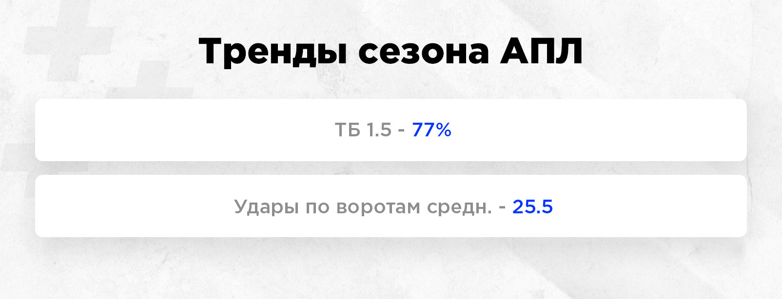 Но такой результативности мы бы не увидели, если бы не большое количество ударов – в среднем в АПЛ в сезоне 2021/22 за 90 минут команды наносили по 25,5 ударов. Самым интересным здесь можно назвать то, что среди лидеров нет "Манчестер Сити" (в их матчах били по 24.9 раз), зато есть атакующий и чудом спасшийся от вылета "Лидс", во встречах которого пробивалось почти по 28 раз, а ТБ(25.5) имеет показатели 27+11-!