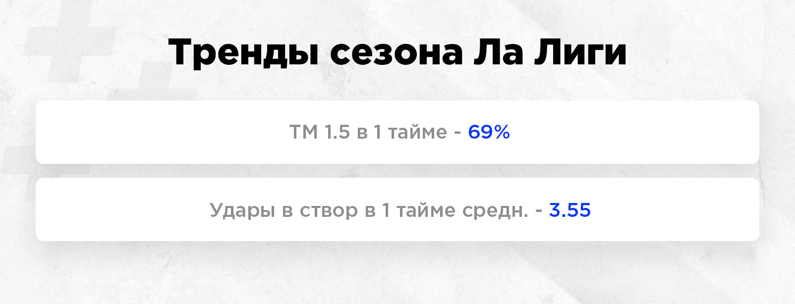 В стране, расположенной на Пиренейском полуострове, результативностью похвастать не могут, особенно сухими здесь получались первые таймы: в среднем по 1.1 голу за 45 минут игры. ТМ(2.5) в первой половине игры в Ла Лиге проходил в 88,42% встреч, даже ТМ(1.5) имеет весьма притягательные цифры – 68,95% прохода. Среди самых низовых команд на первое место врывается, причём единоличным лидером, "Реал Сосьедад", в матчах которого в среднем забивалось по 0,61 гола за первую 45-минутку.