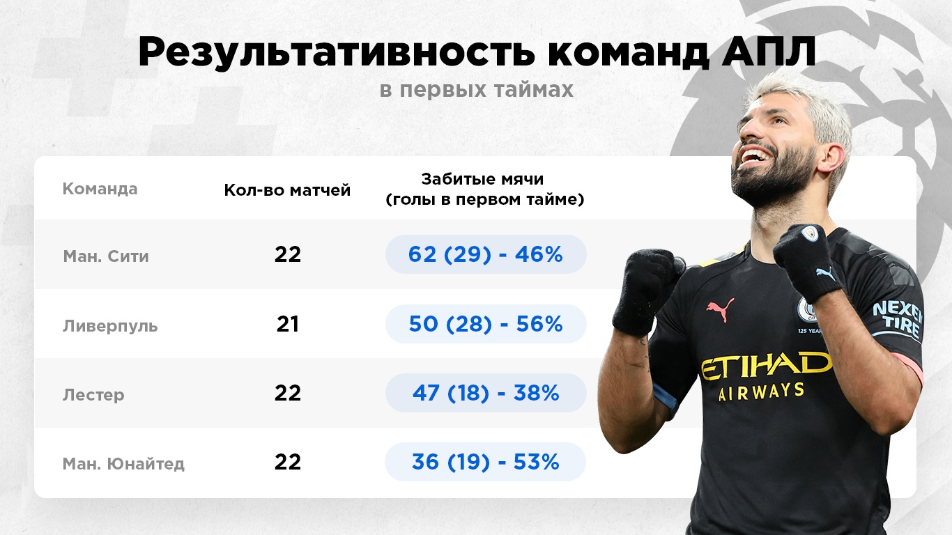 “Ливерпуль” занимает второе место в АПЛ по количеству забитых мячей – 50 голов в 21 матче, больше только у “Манчестер Сити” (62). При этом большую часть мячей мерсисайдцы забили в первой половине встречи – 28 из 50. В последних восьми матчах “красные” неизменно забивали в первом тайме. Так, например, в дерби с “Эвертоном” на счету “Ливерпуля” 4 гола в первой половине игры.