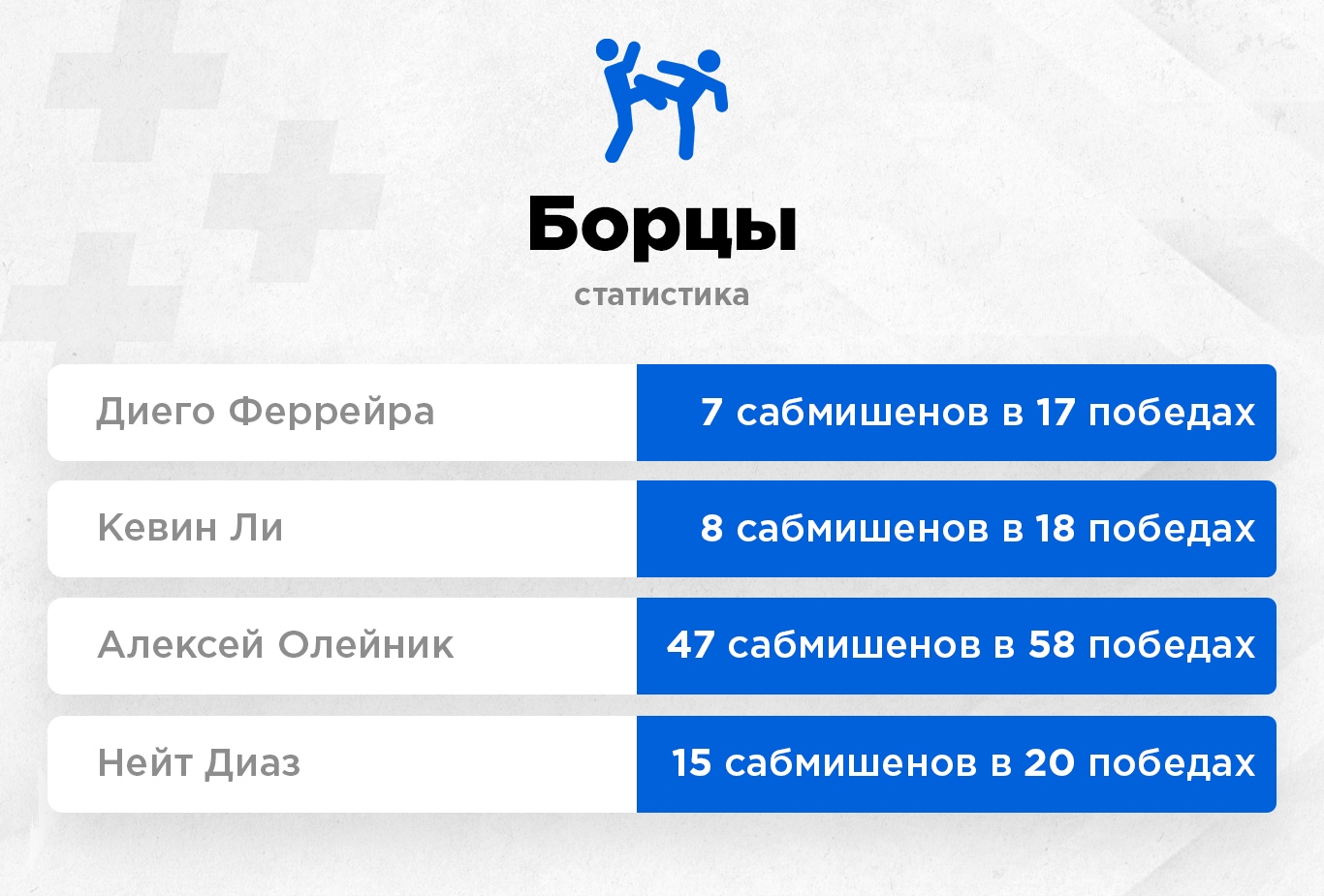 На первом турнире UFC в 2020-ом году уже встречались два представителя борьбы — Диего Феррейра и Энтони Петтис. Оба бойца базовые джитсеры, так что неудивительно, что поединок завершился удушающим. То же самое было и в матче Тони Фергюсона и Кевина Ли. Базовые джитсеры хоть и пытались в бокс, но все решилось удушением в третьем раунде. Можно до бесконечности приводить примеры финишей в схватке борцух, но итог будет одним — удушающие, болевые и грэпплинг. Вы помните, чтобы Хабиб кого-то отправлял в нокаут? То-то и оно.