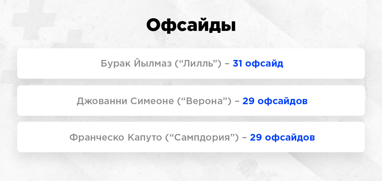 "Верона" – самая офсайдная команда Серии А, но большую разницу здесь делает именно аргентинец (29 положений вне игры от 80 общих). У ближайшего преследователя Капрари всего 11. Заиграть ИТБ офсайдов Симеоне или ИТМ команды в его отсутствие может быть весьма выгодно.