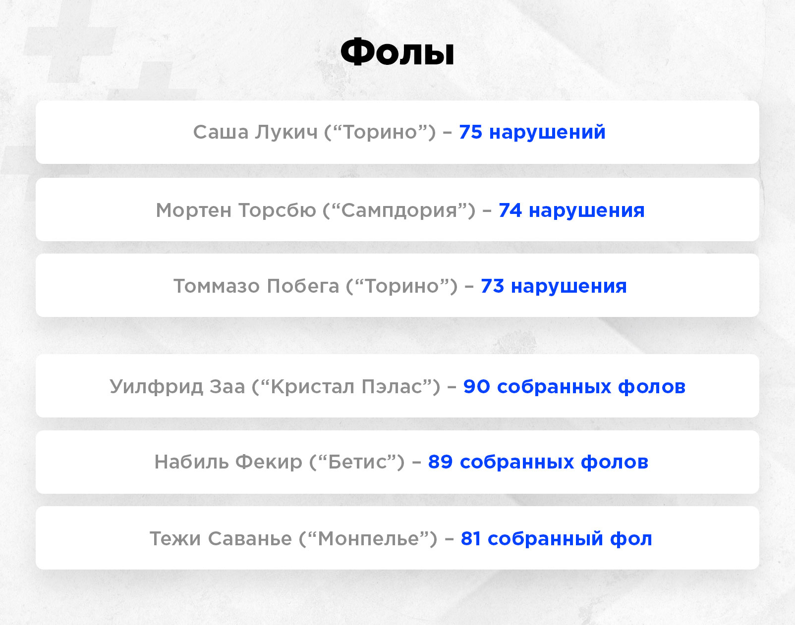 А здесь противоположные показатели: 75 фолов (больше всех в топ-чемпионатах), но при этом всего 6 горчичников. Лукич явно умеет нарушать осторожно. Да и в целом "Торино" является с огромным запасом самой фолящей командой (559), когда у ближайшего преследователя 485. Но при этом по ЖК команда идет в середине, прилично отставая от лидеров. Поэтому вполне можно пробовать заигрывать фолы туринцев, либо же ИТМ ЖК.