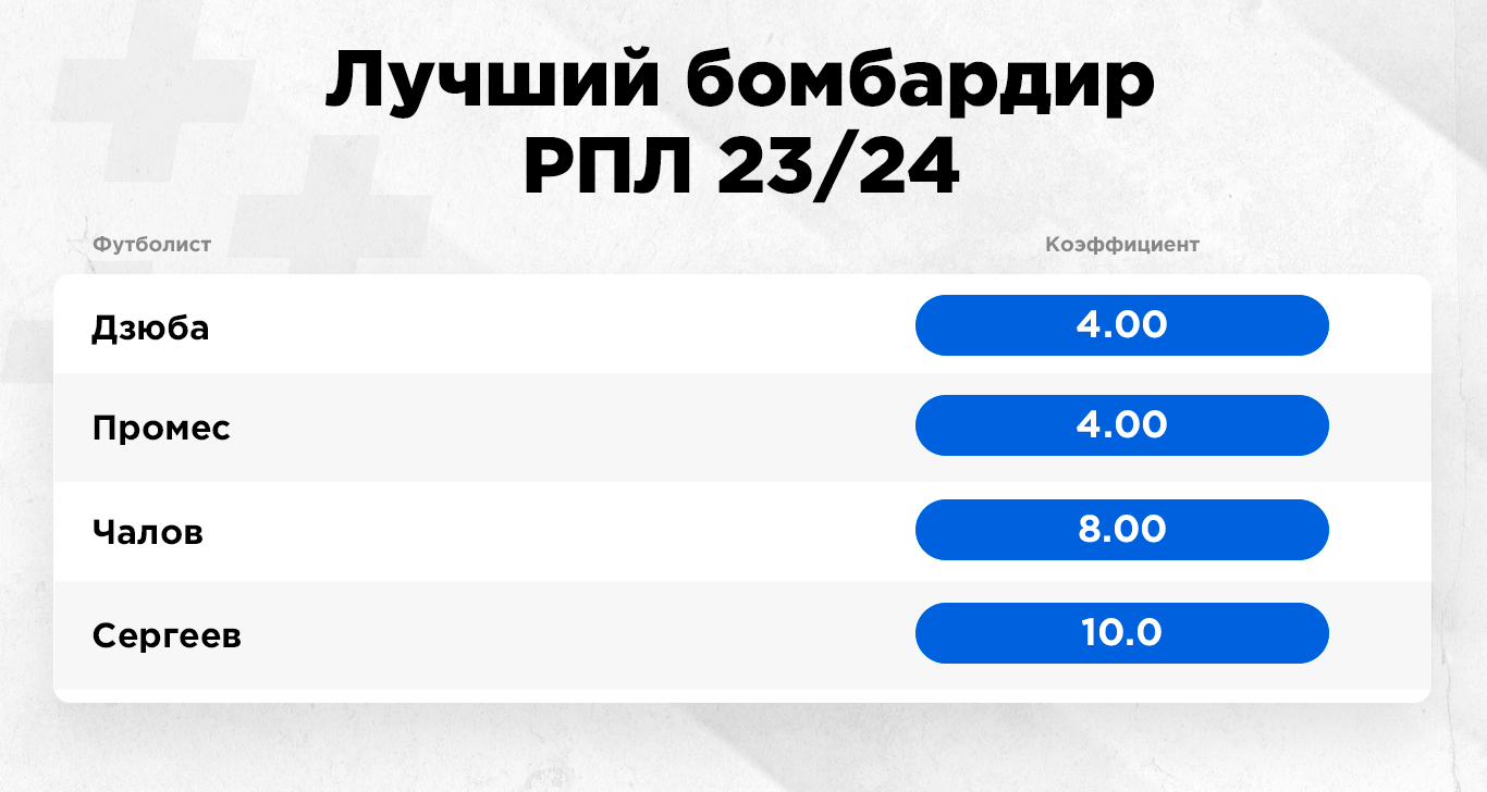 Прогноз: Дзюба - лучший бомбардир РПЛ за 4.00.