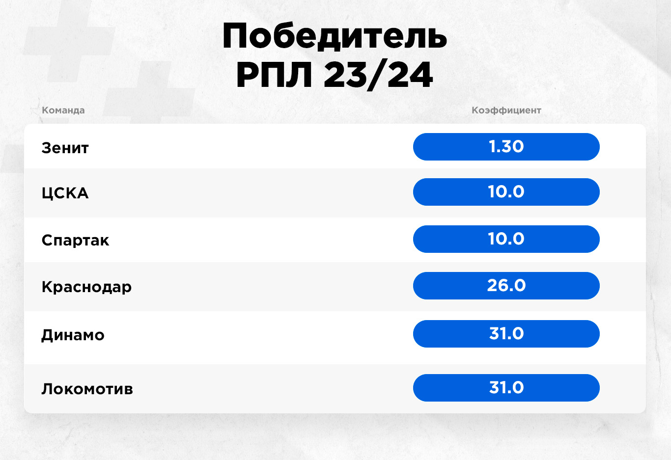 Естественно, питерский коллектив считается главным кандидатом на первое место, однако ему могут помешать "Краснодар", "Спартак" и ЦСКА. Основным конкурентом, вероятнее всего, будут "красно-белые", а "быкам" и "армейцам" придётся решать локальные проблемы.
