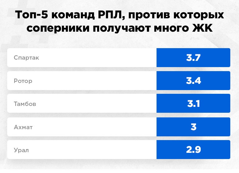 3. В девяти из десяти матчей против представителей верхней части турнирной таблицы (1-9 место) не проиграли по фолам. Действуя вторым номером, "Ростов" заметно чаще нарушает правила.